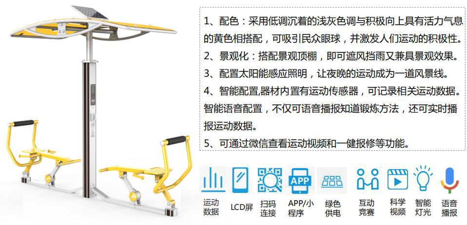 mk体育全民健身产品涵盖健身路径、运动场馆、篮乒气羽排等产品,分为多个系列,先进的制造工艺、严苛的质量检测,确保产品性能优良、品质安全可靠,让运动简单科学。并将全民健身器材(户外路径器材、体育场馆等产品)进行智能化升级和互联,实现全人群覆盖、全场景智能,让运动赞美生活。