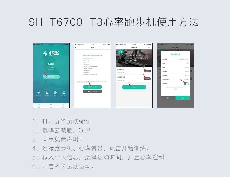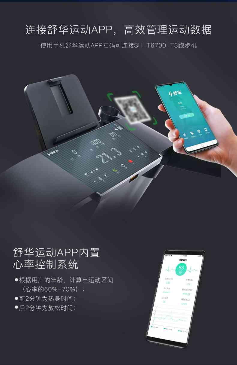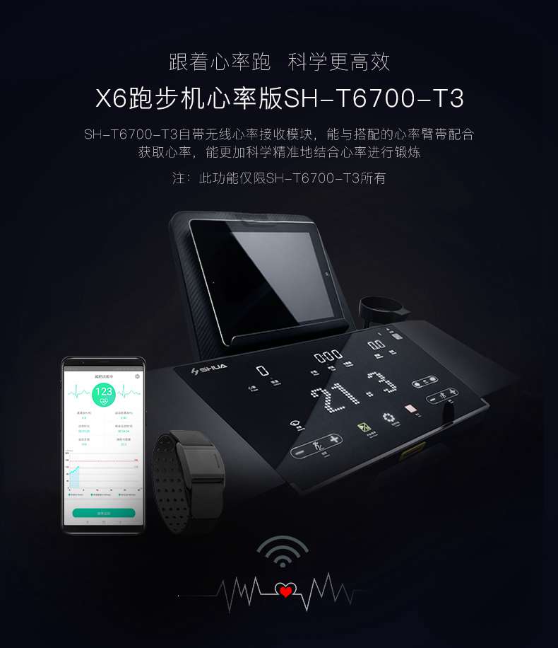 SH-T6700-T3跑步机为了帮助用户进行更加科学有效的运动,搭载mk体育APP连接心率臂带实现心率控制,通过监测运动心率从而实现科学运动。