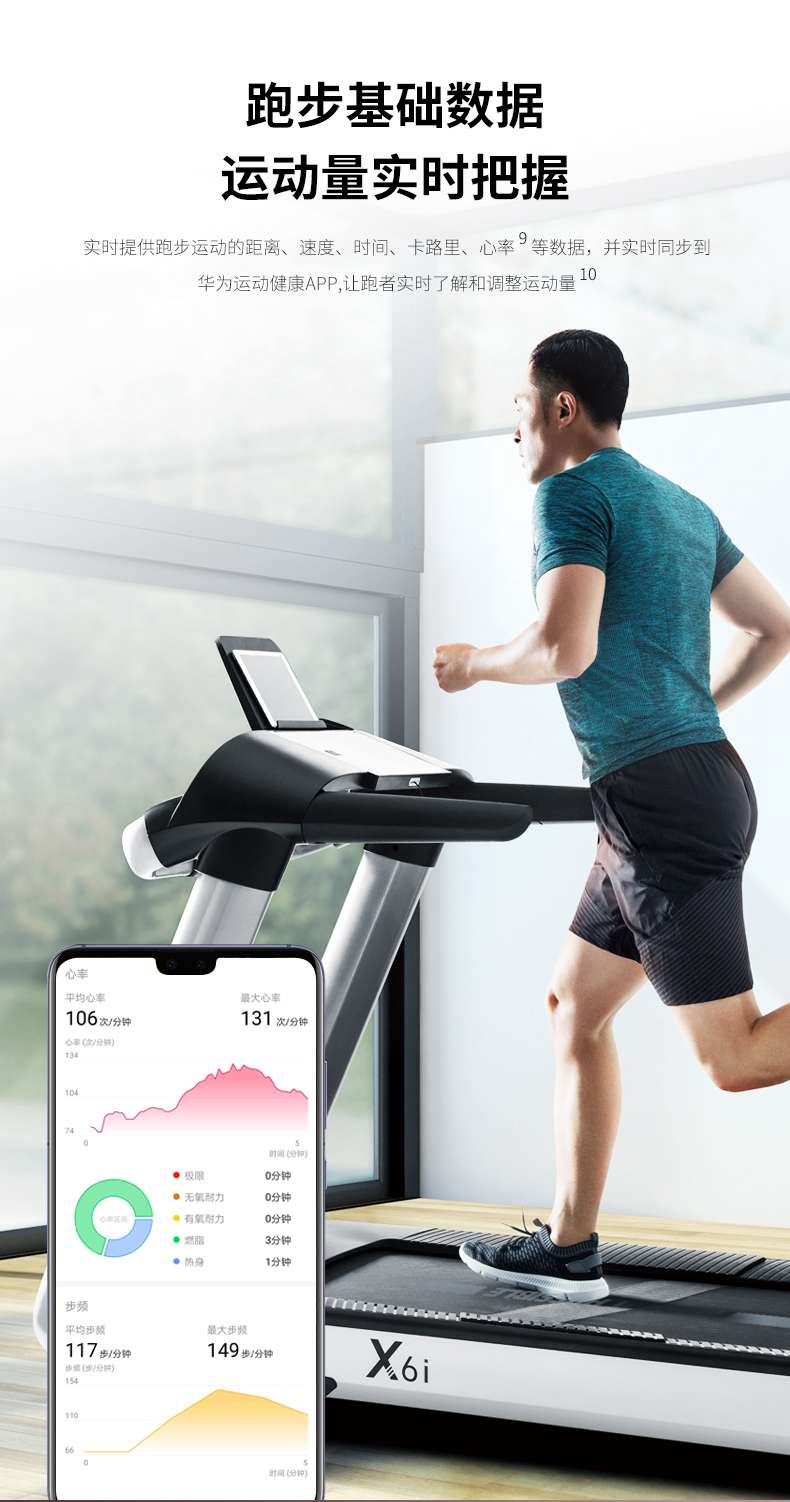 mk体育跑步机-X6心率跑步机,可根据用户运动是实时心率,跑步机自动调节跑步速度、坡度等进行运动强度的调节,更科学;X6i华为版跑步机,可以通过连接华为运动健康APP,监测多种类型跑步数据。欢迎来电咨询~