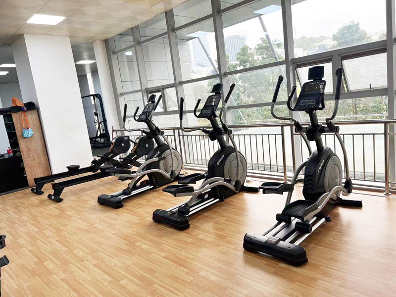 企事业单位健身房面积约为240平方,在接到客户项目需求时,我们根据客户的需求及预算,从装修布局、科学分区、合理的器材搭配等方面,为其提供了一站式健身解决方案。有氧区域配置mk体育V9跑步机、X5跑步机,X5-E智能椭圆机、动感单车、划船器等有氧训练器材,有效锻炼提升人体心肺功能。