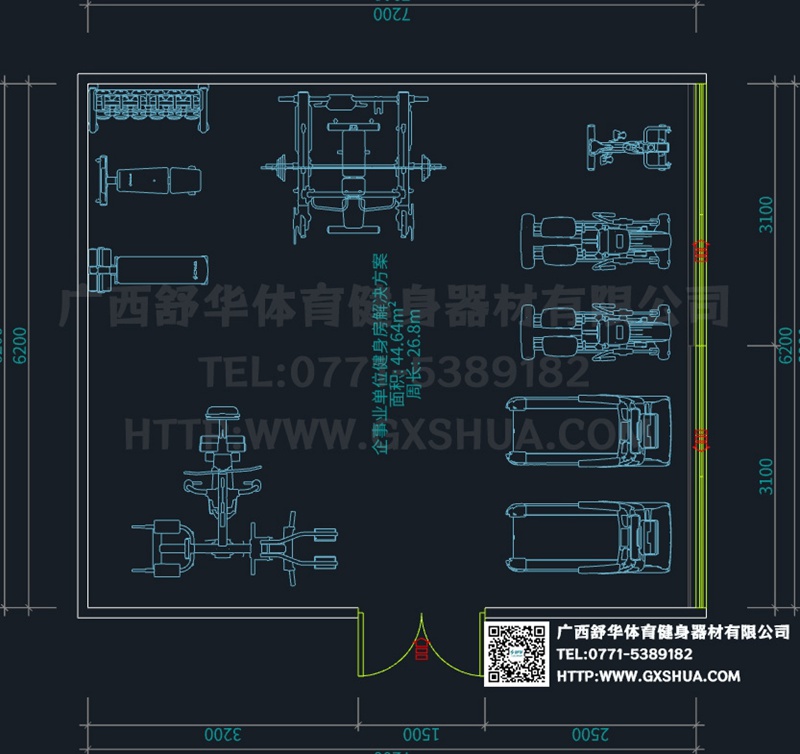 此方案要求面积小于45m²,适用于企事业单位、酒店会所、楼盘社区、工作室等健身场所,能满10-15人同时健身使用。(方案根据场地空间大小、预算、产品需求等进行配置仅为启发性参考)