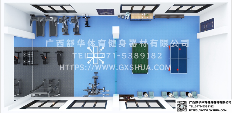 G6853史密斯机*1台,G5755腹肌板*1台,6付哑铃套组*1套,G599哑铃凳*1张,满足肌肉训练需求。铺设防滑、减震的地垫,为员工提供安全舒适的运动环境,同时减少器械使用时产生的噪音,安装大面积的镜子,增加空间的视觉感,方便员工在训练时观察自己的动作姿势,保证训练效果和安全性。