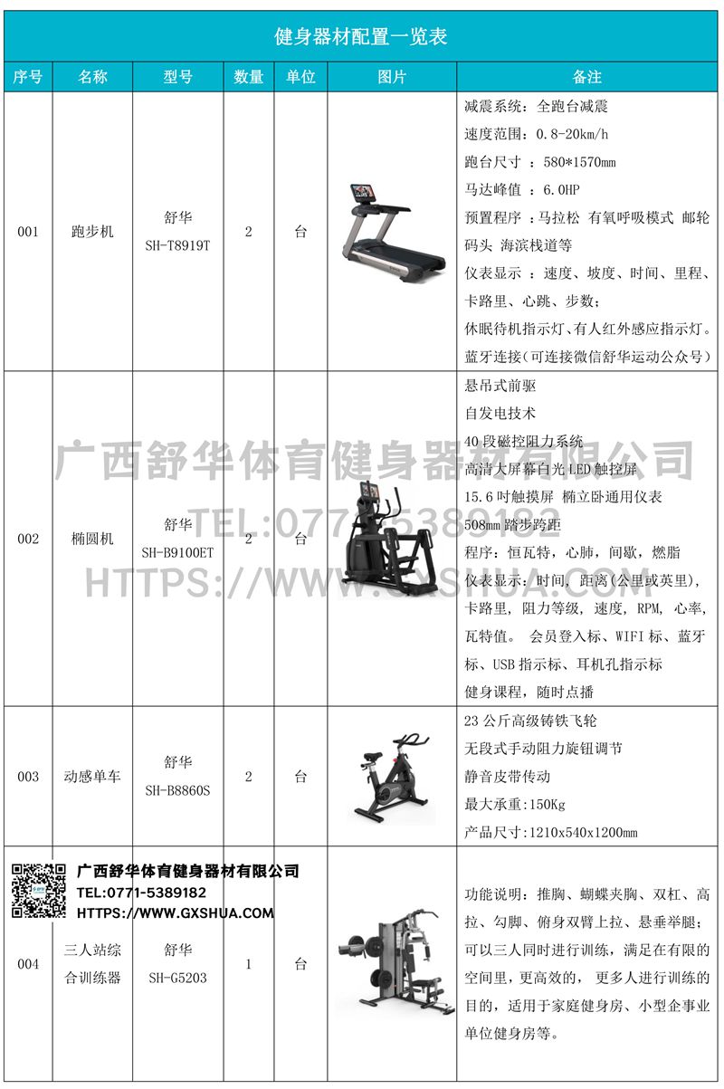 1.mk体育V9跑步机SH-T8919T*2台-V9+采用全跑台减震设计,为跑者提供舒适的落脚地感和稳定的跑步支撑,良好的缓冲防护,降低膝关节受伤风险。商用大跑台,为跑者提供从容奔跑空间,180kg承载力,580*1570纯跑台面积,满足专业健身需求。V9+采用F级商用马达,6HP峰值马力,20km/h最高速度,提供源源不断的动力。V9+内置健身直播软件,每周提供直播课程,内含大量专业线上健身点播课程,可为健身房不同人群提供多样化健身课程服务。