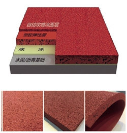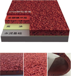 混合型塑胶跑道产品特点: 混合型塑胶跑道由全PU掺杂部分橡胶颗粒为底层,聚氨酯颗粒与塑胶浆为面层铺设组成的高性能塑胶结构。它是国际田联认可的运动场地,可全天候使用,雨后能立即使用。 混合型塑胶跑道具有环保、全天候使用、弹力好、冲击力吸收、耐候性、耐磨性、耐压缩、抗钉力、耐冲击、平坦性、粘接性等特点、实用性强、日常维护简单易行。混合型塑胶跑道价格适中,适合各级标准比赛、训练体育运动馆、各大群体活动运动场。 适用范围: 各级各类学校及体育场、田径场跑道、全民健身路径、室内体育馆训练跑道、游乐场道路铺面。
