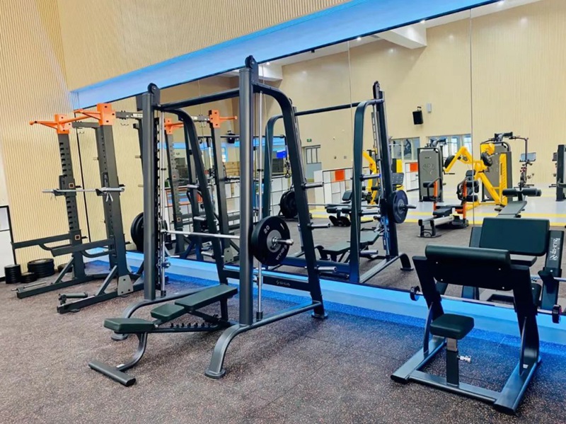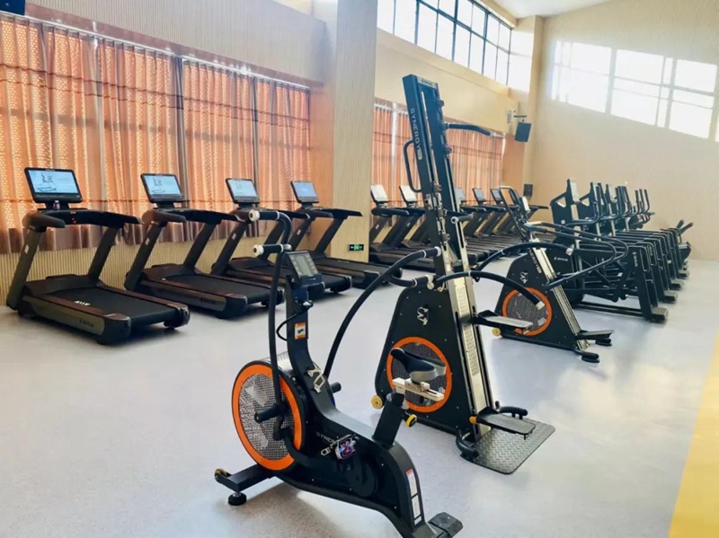 值得一提的还有学校的健身房,考虑到学生们的课后锻炼需求,馆内配置了跑步机、椭圆机等有氧训练器械,以及多功能拉伸机等器械,学生可以根据自身需求选择锻炼器械,开启一段沉浸式的运动体验。