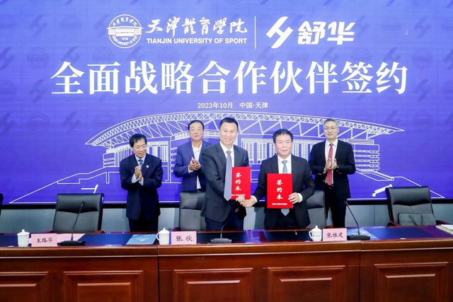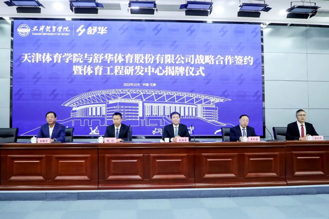 2023年10月10日,mk体育股份有限公司与天津体育学院战略合作签约暨体育工程研发中心揭牌仪式在天津举行。天津市市委教育工委委员、市政府教育督导室总督学王秋岩,天津市体育局副局长(一级巡视员)王路华,mk体育董事长兼总裁张维建、副总裁李晓峰,天津体育学院校党委副书记、院长张欣出席。签约仪式由天津体育学院副院长张卫国主持。
