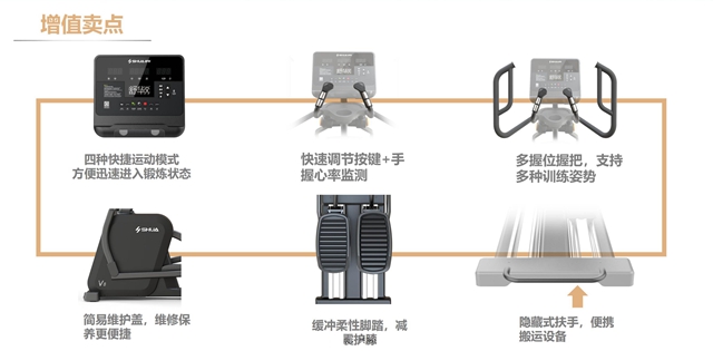 在众多健身器材里,椭圆机是当之无愧的实力王者。作为经典的有氧健身器材,椭圆机不仅可以有效调动身体手臂、腰背、臀、腿等部位的肌肉群,带来高效的减肥塑身效果,对于关节的冲击也较小,不易造成运动损伤,对于健身小白,大体重基数,中老年人都十分友好,可谓老少咸宜。