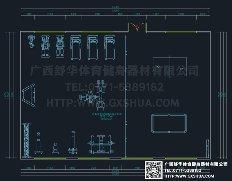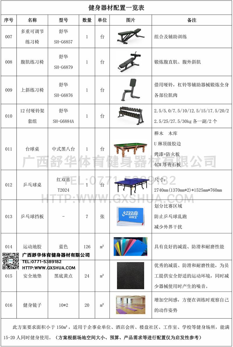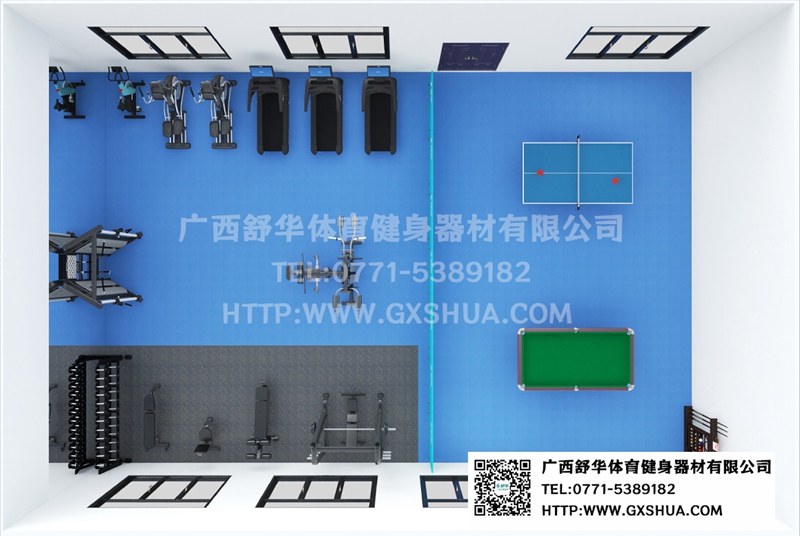 150m²企事业单位健身房根据客户需求及预算,有氧器材区域配置mk体育跑步机、椭圆机、动感单车,多元化的有氧器材能够有效提升心肺功能;力量器械配置综合训练器,可拓展多种训练方法,提供针对性训练、多种组合等训练方式,全方位激活身体机能。自由力量区域配置哑铃套组、腹肌训练器等满足多样化训练需求,促使健身训练更丰富。单位健身房配置台球桌、乒乓球桌,为员工的业余生活增添了乐趣和选择。与传统的健身器材锻炼相比,台球、乒乓球具有更强的娱乐性和趣味性,能够吸引更多员工参与到健身活动中来,提高健身房的使用率,让员工在工作之余有更多放松身心的方式。
