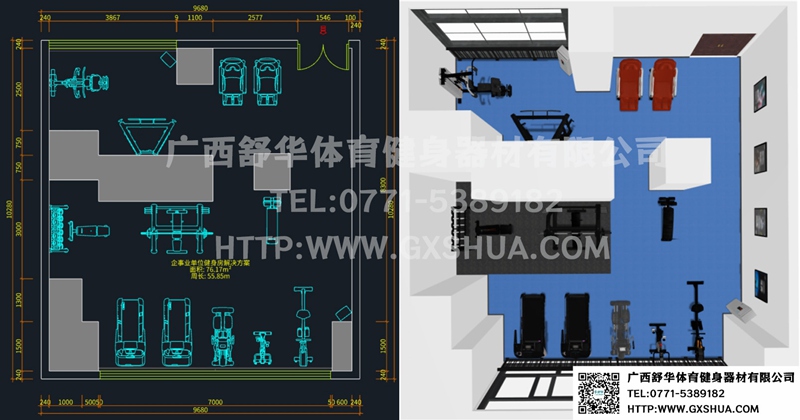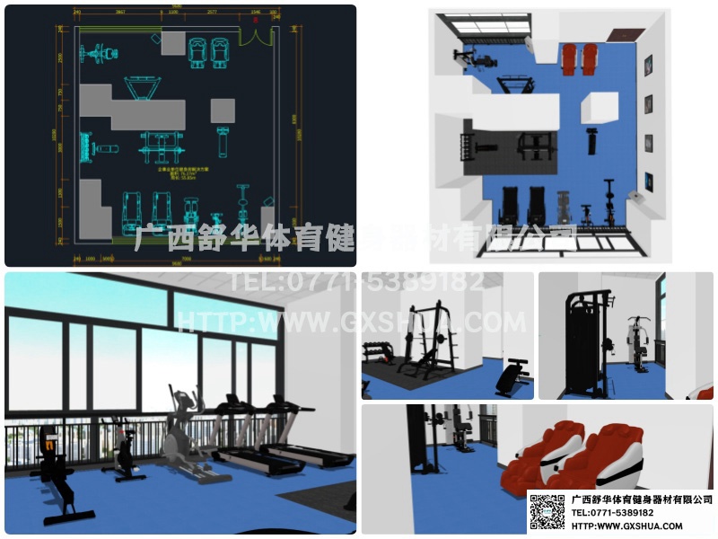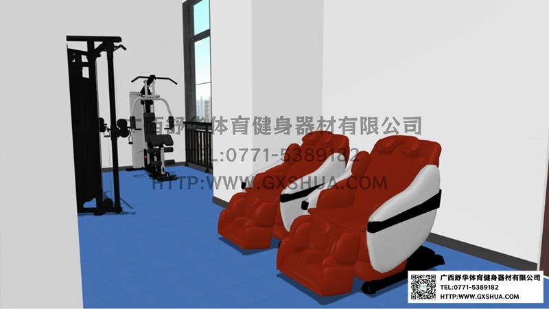 由于企业单位健身房的不规则性,根据场地、职工需求、整体预算,有氧器材区域配置mk体育跑步机2台,椭圆机、动感单车、划船器各1台,满足职工的日常有氧训练需求,有效地提升心肺功能;力量器械配置单人站综合训练器、小飞鸟,满足使用者全身锻炼的需求;自由力量区域配置史密斯机、哑铃套组、腹肌板满足多样化训练需求,促使健身训练更丰富,休闲区配置按摩椅,可以促进血液循环,让员工使用按摩椅放松身心,可以能够有效缓解工作压力。